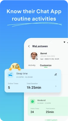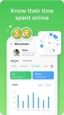 Know the time spent and times at a specified time, such as monitoring your kids' WhatsApp status during sleep time.