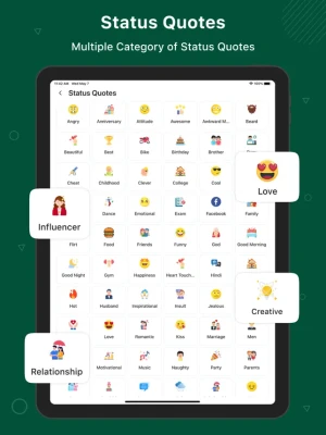 * Status Quotes: Get daily updated status ideas, quotes, and captions to express your mood.