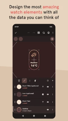 Design your own watch elements (watch hands, backgrounds, complications, custom elements) with the included watch element designer! Pujie Watch Faces has the most advanced watch face maker, supporting true vector graphics and images.