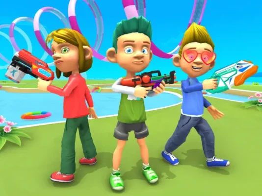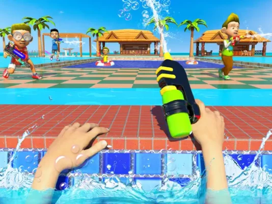 Grab a Water Gun and take cover to aim at your friends with water splash gun in this water park nerf games world. Avoid soaking on the pool side and be the splash hero.