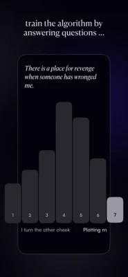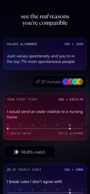 1. Answer questions about your values2. Based on your answers, match with people you're compatible with3. The more questions you answer, the better your matches