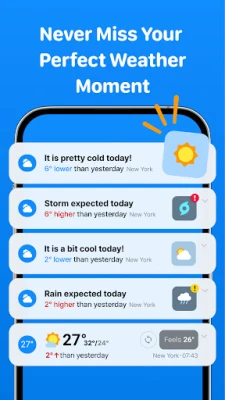But that's not all. Weather App also offers detailed analyses of weather conditions, including real-feel temperatures, UV indices, relative humidity levels, and diverse precipitation measurements, all underpinned by the accuracy of NOAA. Our indicators for wind speed and direction are indispensable for planning your outdoor ventures. Plus, stay alert with our prompt weather notifications, designed to keep you prepared for any climatic shifts, with updates directly from the weather app.