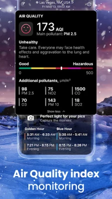 Please note that some supplementary features and weather details in the basic version are subject to limitations (ex. UV index, 14-day weather forecast, Sun and Moon, Lightning tracker, Visibility, Air Quality Index, Weather widget, etc.). These limitations are also subject to change.