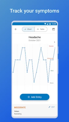 • Symptom Tracker – Track ongoing symptoms & conditions over time.