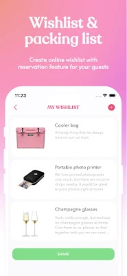 Guest list. Import guests from your contacts and manage their RSVP’s. Wedding planning is easier when you have a convenient guest list, isn’t it?