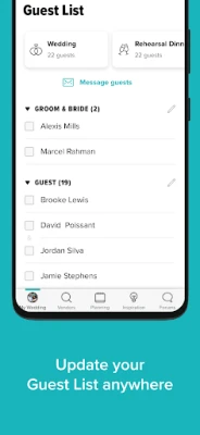 Wedding Guest List: Easily organize your guest list. Track meal selections and RSVPs for all of your wedding guests.