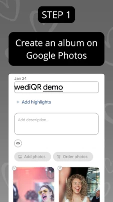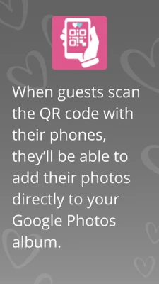 No registration needed—our app creates a sign that allows guests to instantly upload and share their photos in a Google Photos album created by the couple.