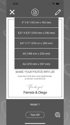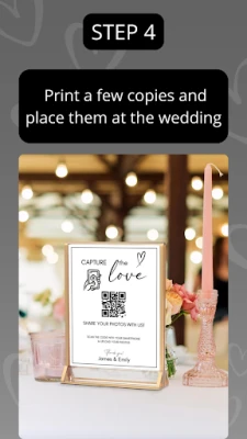Our app generates a sign with a QR code that you can download, print, and display at the wedding.