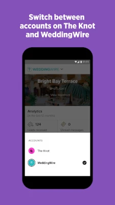 1. Two Brands, One App. We’ve unified The Knot and WeddingWire apps into one and added the ability to easily switch between your accounts—it’s now all in one place.