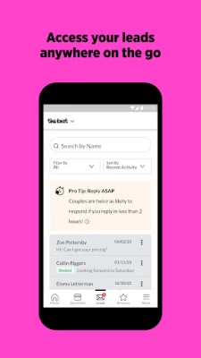 2. Leads. Get notified of your sales leads, access them anywhere—directly from your phone—and respond to couples quickly to win their business.