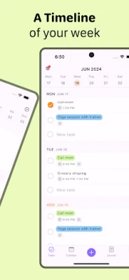 - Manage your weekly tasks in an intuitive timeline and have control over your week.
