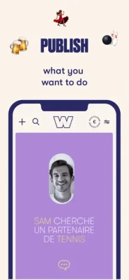 1) Publish what you want: chatting, having a drink, finding a sports partner, having a picnic, playing board games, etc. Your profile will be visible to other users with common interests.