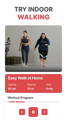 Indoor Walking Workouts: get a personal workout plan, follow video guides, and lose weight at home. Try various indoor walking workouts and choose your favorite! Dare to take on the "28 day indoor walking challenge" to burn fat and lose weight in a short time by combining exercises with walking.