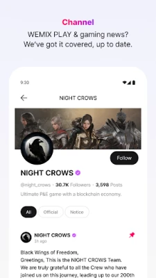 Get the latest updates on WEMIX PLAY and your favorite games—fast and direct.