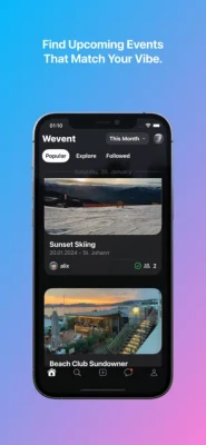 - Find lit events: Tired of missing out on the best parties? With Wevent, you’ll always know where the action is. Browse events, see what’s trending, and never have FOMO again.