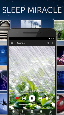 • On-screen media player and volume controls with swipe gesture support for navigating sound collection