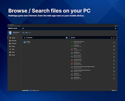 WiFi File Manager is the easiest way to access your files on your Android phone via WiFi on any PC at home. 🏠
