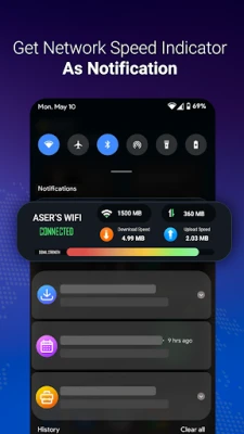 You can directly turn on/off Wi-Fi from the app. Also get the nearby Wi-Fi network details. Check your connected Wi-Fi speed and performance. Save the Wi-Fi speed test history.