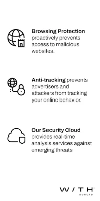 WithSecure Elements Mobile Protection is a proactive, streamlined, full-coverage protection for Android. Fight off phishing attempts, prevent visiting harmful websites, block malware and detect potential vulnerabilities.