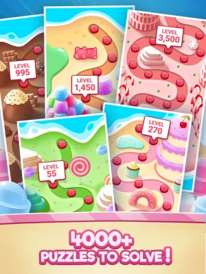 - Progress through a lovely candy world!
