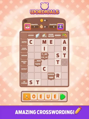 Here's how it works: • Both players get 5 letters to start their turn. • You have 60 seconds to put those letters in the right spots. • You earn points for putting letters in the correct places, creating words, using all 5 letters, and discovering special bonus tiles. • Think strategically about where you place your letters – sometimes it's smarter to save an important one for later!