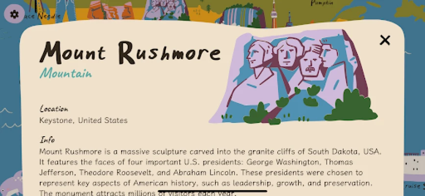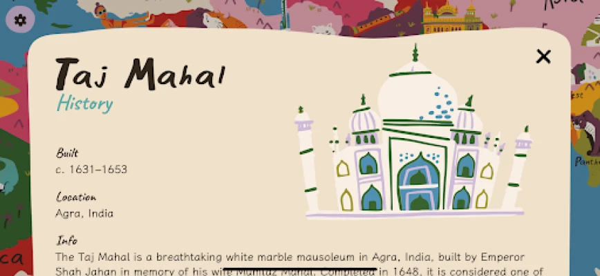 World Atlas is an interactive app that offers a fun and educational way to explore the world and learn about geography. Featuring a colorful, hand-illustrated globe, this app allows you to click on 170 landmarks, animals, natural wonders, cultural icons, and more to discover interesting facts about countries of the world. From famous buildings and historic sites to waterfalls and oceans, you can uncover all the wonders of Earth.
