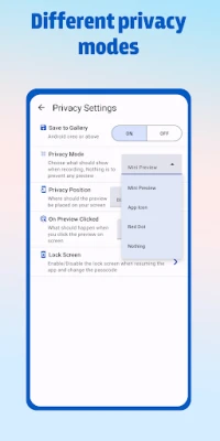 Offers multiple recording modes (mini preview, icon, no preview)