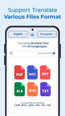 ✅ Support common file types: Supporting translate PDF, Doc, XLS, CSV, Text, Image file, this app seamlessly translate various file formats, ensuring that you can translate any document , any language you need.