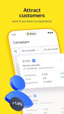 Already in the app, you can: • Set up campaigns with Easy Start, edit them, and track their performance • Monitor key metrics for campaigns created in Direct Pro • Keep an eye on your budget and top up your balance quickly and easily • Receive only essential notifications about your campaigns — like when they start or stop