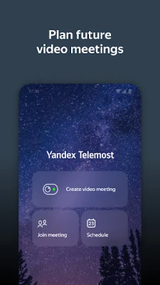 Creating meetings is easy! Just tap Create video meeting and send the link to your friends and colleagues. To create a meeting, you must have a Yandex account.