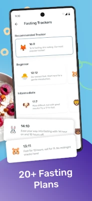 • Optional fasting tracker for various calorie tracker plans