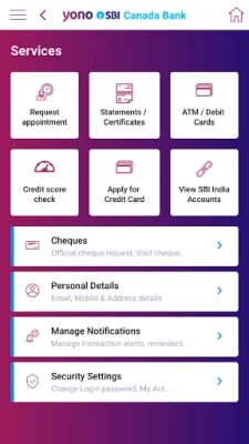 Users can conveniently access below features in YONO SBI Canada
