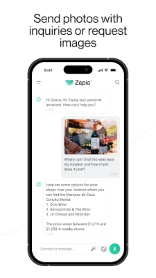 Send a product photo, receipt, or document, and Zapia will analyze and extract useful information. Discover details about products, instructions, or where to buy them.