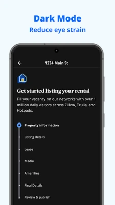 • Dark mode! • Add, edit and publish your rental listings • Set your rent price • Add unlimited photos • Receive notifications as soon as a renter asks about your property and message them in the app • Manage, send, accept rental applications • Get verifiable information about your applicant upfront, such as income and credit score • Build your own digital move-in checklist to avoid having to store photos and files in different places • Collect online rent payments
