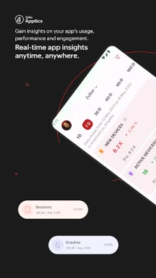 Your Apptics dashboard is now available within your smartphone. View and analyze app metrics from anywhere, anytime.