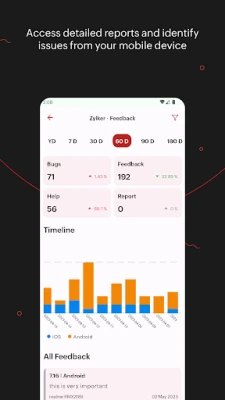Look into the details, logs, stack traces and other diagnostic info of individual crash instances from within the app. Proactively address feedback your apps receive by analyzing feedback timelines, log files, device info files, and session history for each feedback.