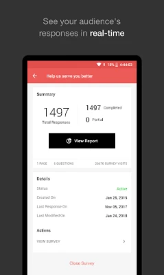 Create and launch your survey from anywhere and analyse reports on the move — that's what Zoho Survey offers with its all-new mobile application for Android.