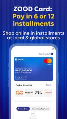 - ZOOD Card: Use your virtual installment card to shop online from popular local and international stores.